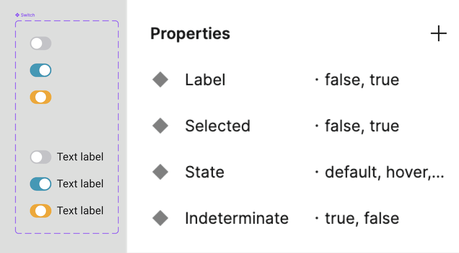 Component States — default values and state options.