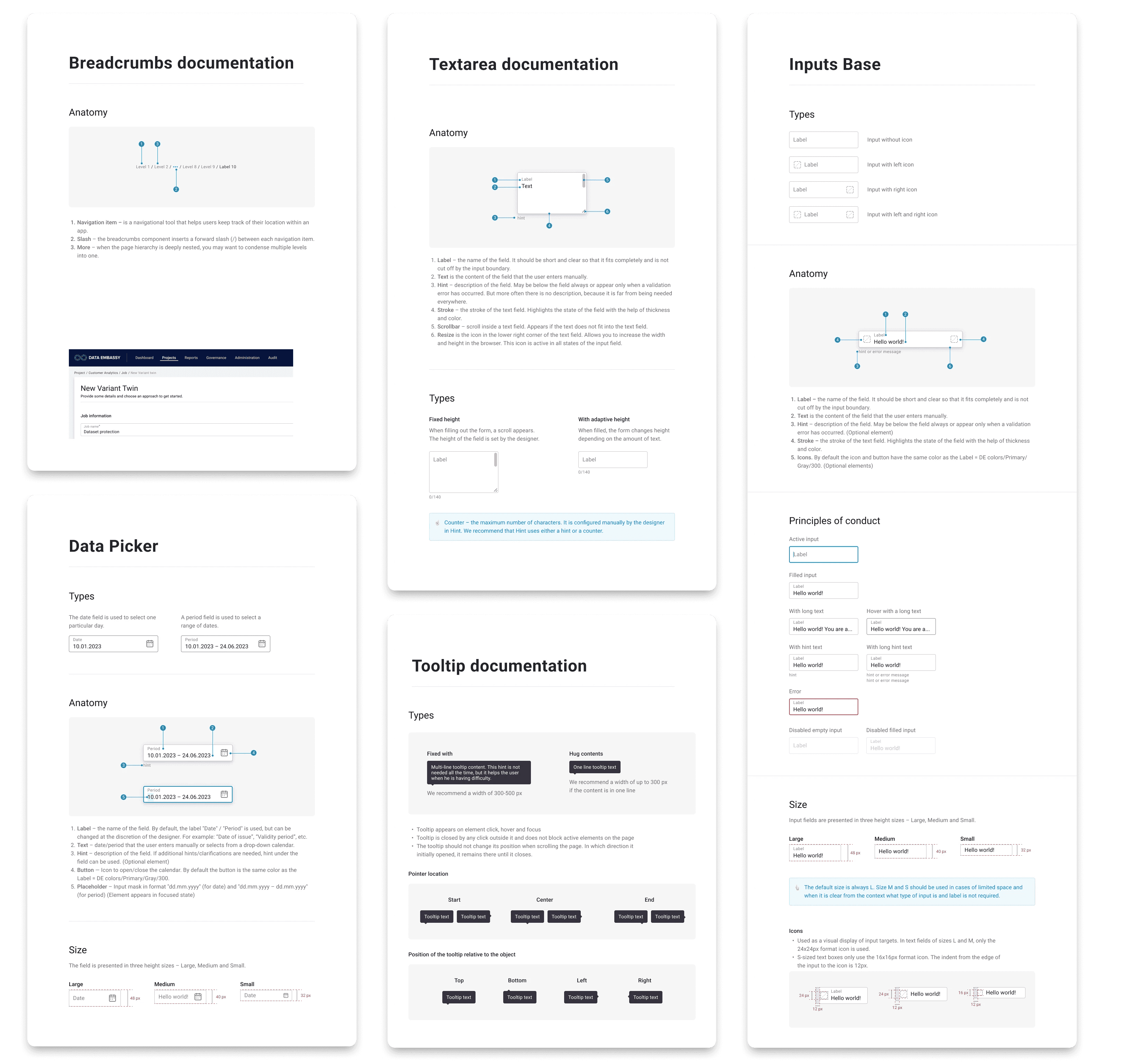 Creating a design system for the Data Embassy platform to ensure visual consistency, speed up interface development, and simplify working with sensitive data under strict security and privacy requirements.