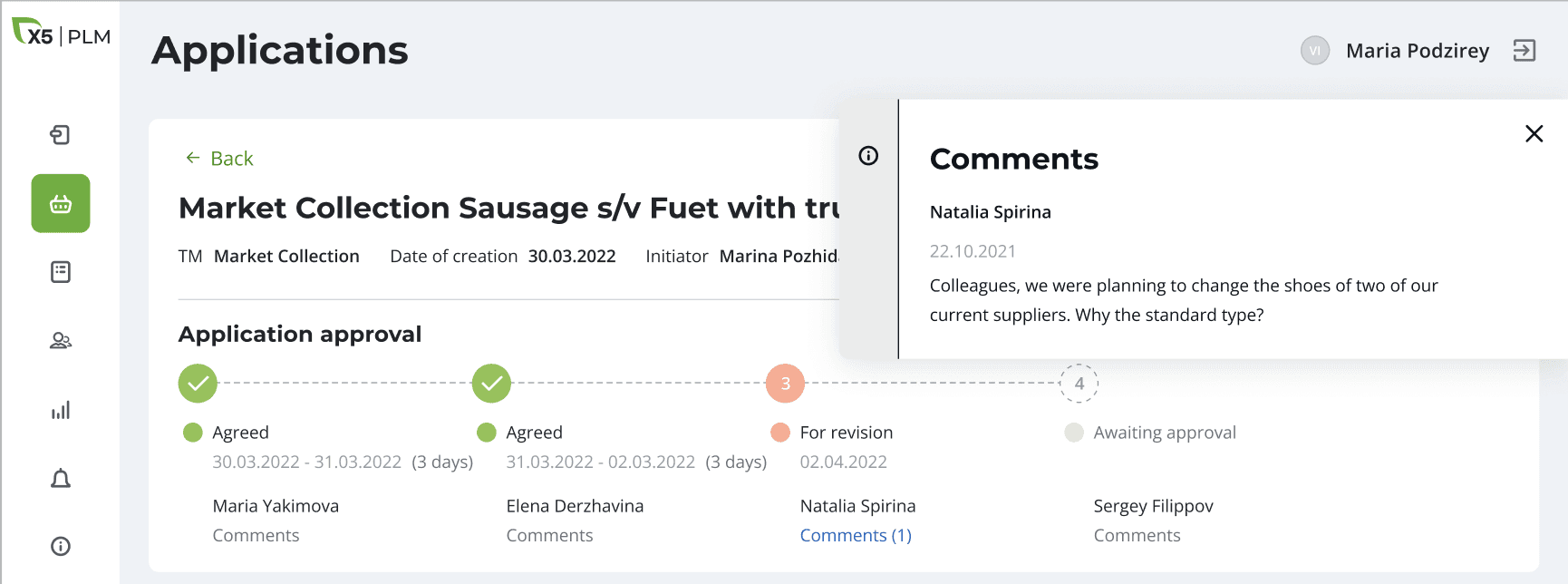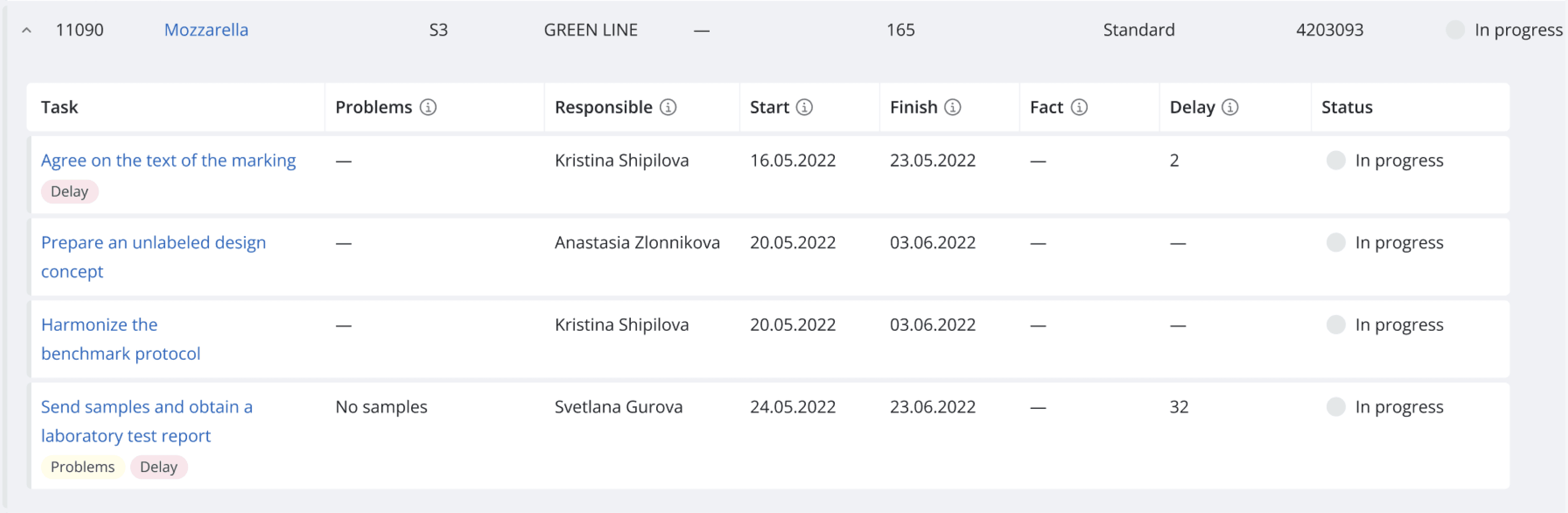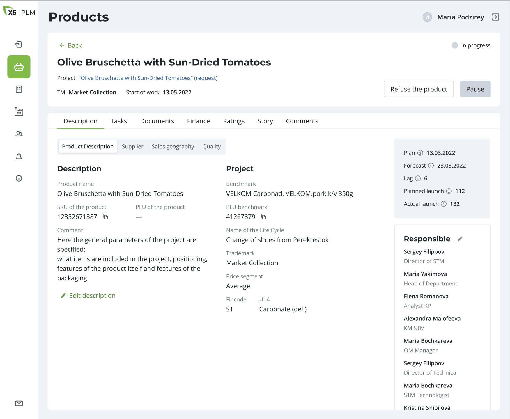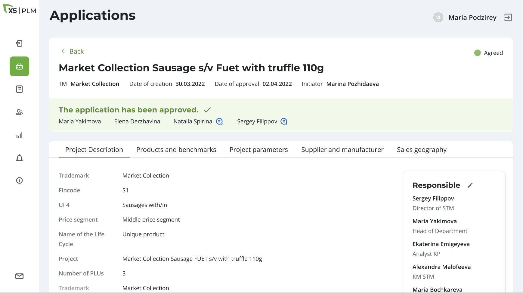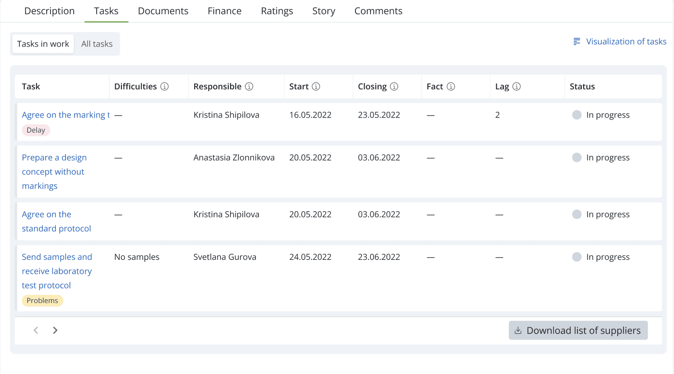After approving the application, the products from it appear in the system and tasks and those responsible for their implementation are automatically assigned.