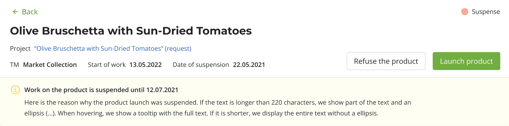 The main work in the system is built in project/product/task cards. The card consists of two parts: