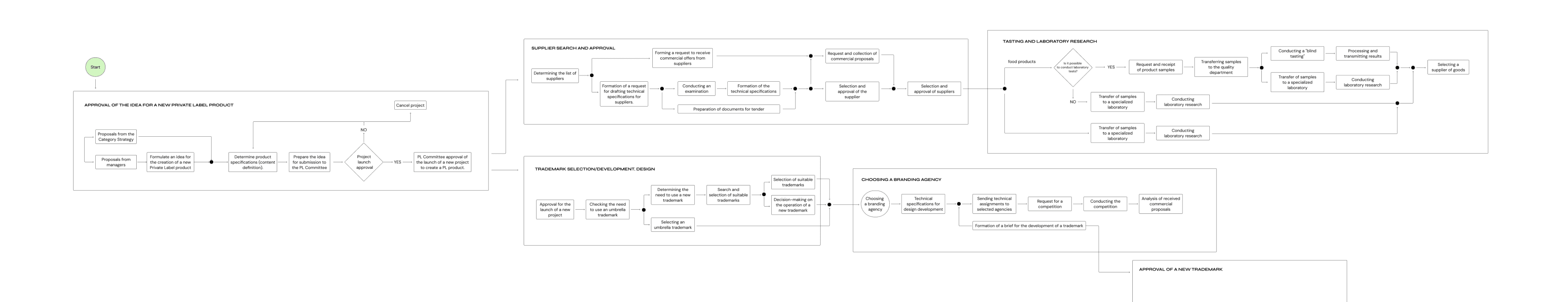 The process of launching private labels was lengthy, sometimes taking over a year, lacking transparency and relying heavily on specific employees.